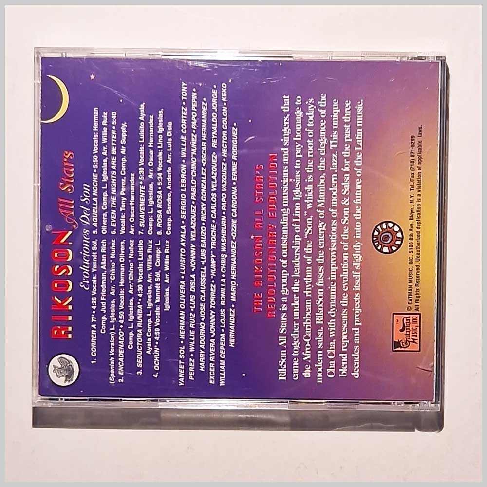 Format: Music CD, Catman Records. Latin music CD release from Rikoson All Stars with the album Evoluciones Del Son. Released on the label Catman Records. Latin music CD. Classic Salsa Music CD. In very good condition. Latin music CD. This hard to find pre-owned music CD is fully guaranteed. Record label: Catman Grade: CD: VG+, Case: VG+ Stock: 1. Item: PM7345cat1002 ---R