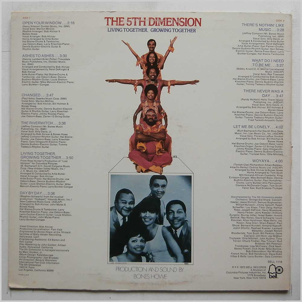 Format: Vinyl Record LP, Bell Records. USA release from 1973. Soul music vinyl record LP release from The 5th Dimension. Classic Soul Funk music LP. A United States vinyl pressing, hard to find outside the USA. Record label: Bell Records. USA Grade: Vinyl VG+, Jacket VG+ Stock: 1. Item: RM16871bell1116 ---5