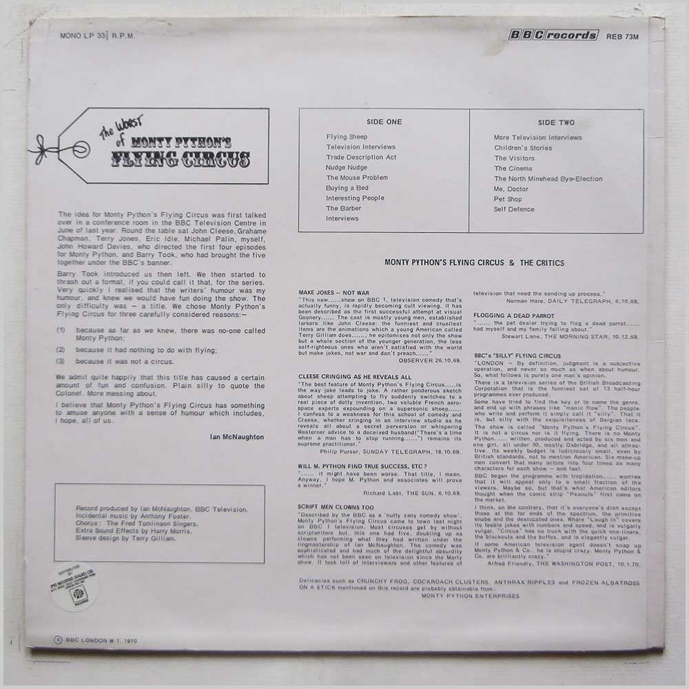 Format: Vinyl Record LP, BBC Records. UK release. Jazz music vinyl record LP release from Monty Python. Classic Non-Music Comedy LP. Lovely fresh and clean copy. Record label: BBC Records. UK Grade: Vinyl EX, Jacket EX Stock: 1. Item: RM22418reb73m ---M