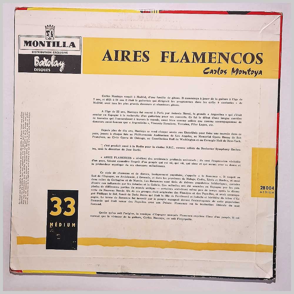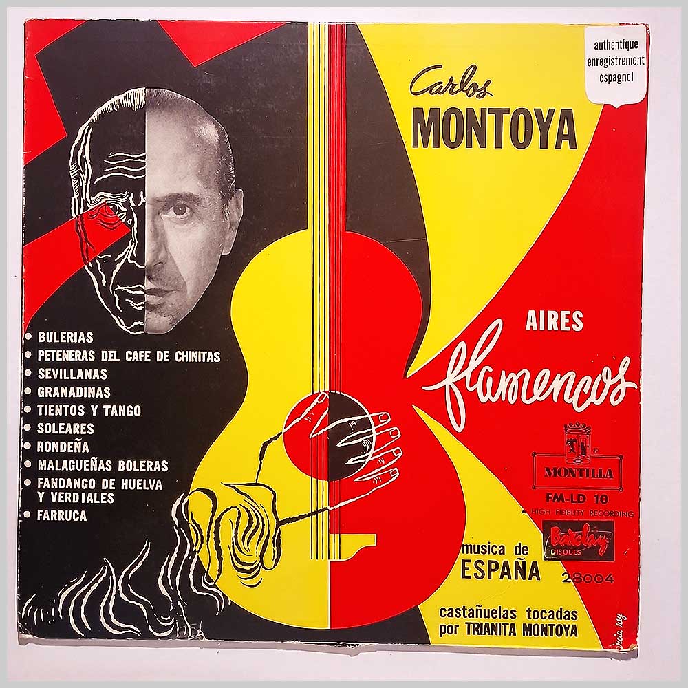 Format: Vinyl Record LP, Montilla Records. France release from 1959. Roots music vinyl record LP release from Carlos Montoya. Classic Spanish flamenco Roots music LP. Some scuffing to record. Record label: Montilla Records. France Grade: Vinyl VG, Jacket VG+ Stock: 1. Item: RM3305828004 ---M
