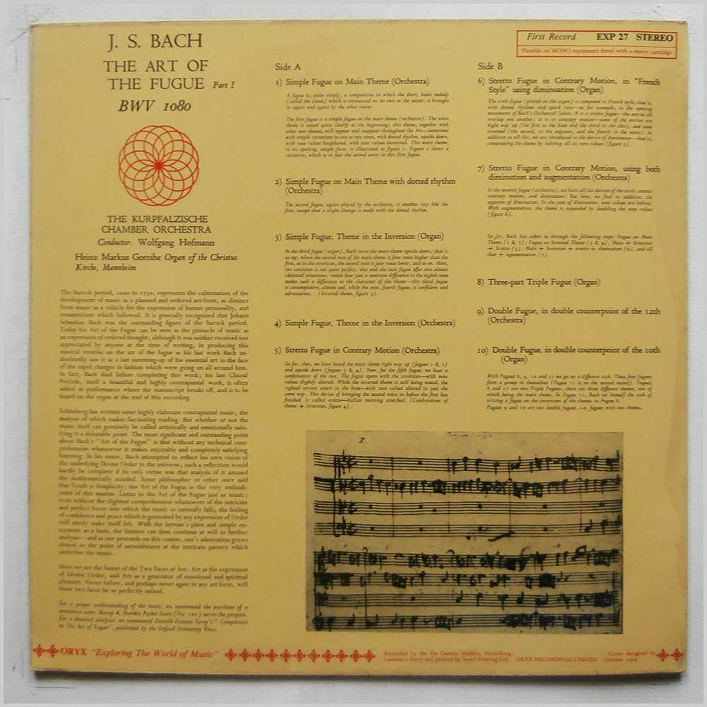 Format: Vinyl Record LP, Oryx Records. UK release. Classical music vinyl record LP release from Heinz Markus Gottsche, The Kurpfalzische Chamber Orchestra. Classical music LP. This is the First Record only. Housed in a laminated jacket. A Classical music vinyl record album release featuring some of the top composers and performers.We are currently away. You can still browse our stock, but cannot place an order. We will re-open mid-February 2026 or sooner. Thanks for your patience!