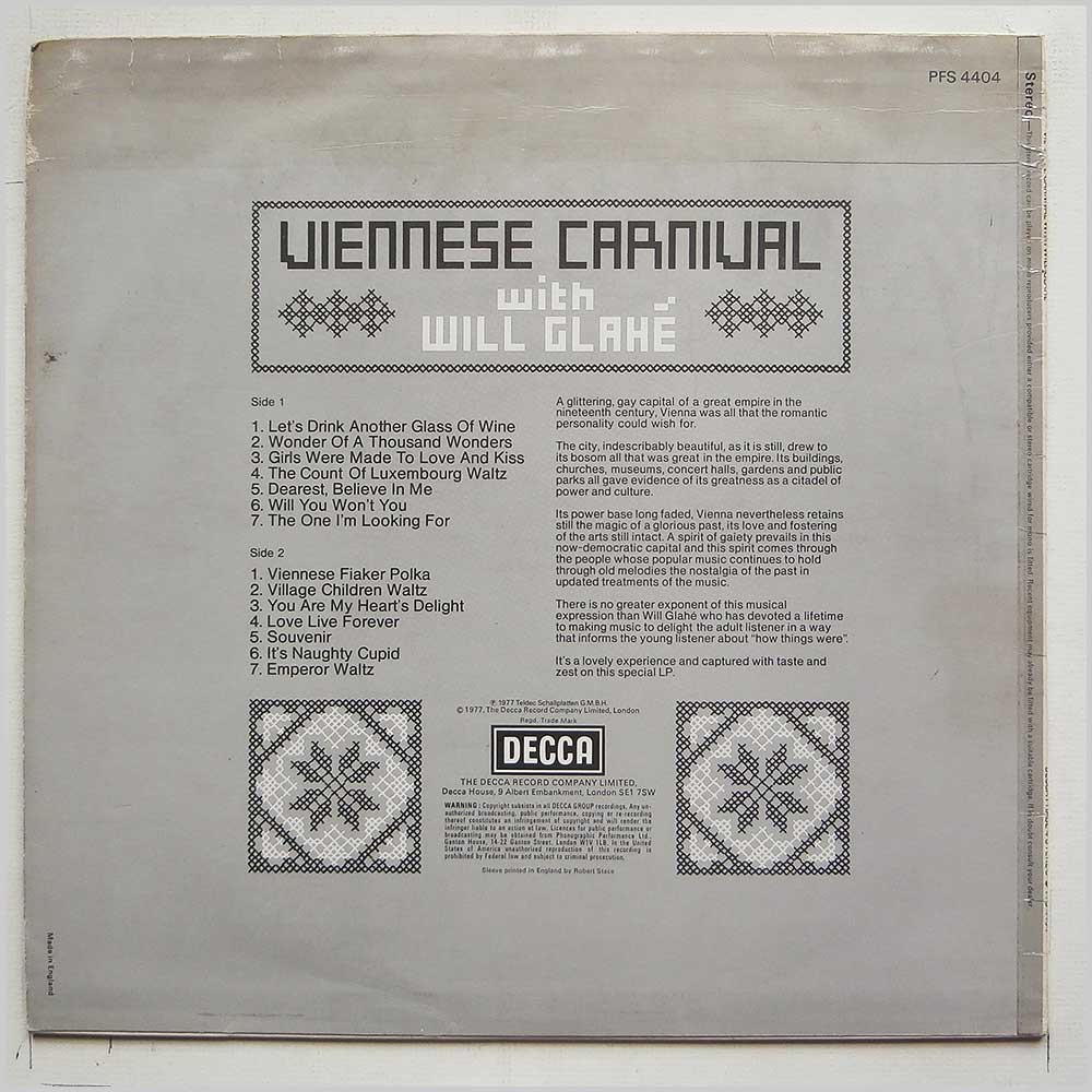 Format: Vinyl Record LP, Decca Records. UK release. Classical music vinyl record LP release from Will Glahe. Classical music LP. Record label: Decca Records. UK Grade: Vinyl EX, Jacket VG+ Stock: 1. Item: RM13214pfs4404 ---G