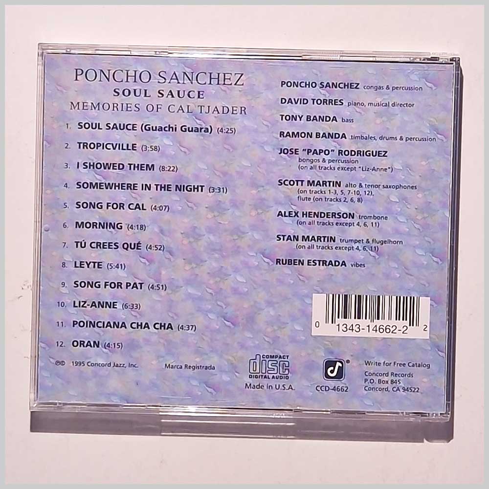 Format: Music CD, Concord Picante Records. Latin music CD release from Poncho Sanchez with the album Soul Sauce Memories Of Cal Tjader. Released on the label Concord Picante Records. Latin music CD. Latin music CD. In very good condition. Latin Jazz music CD. This hard to find pre-owned music CD is fully guaranteed. Record label: Concord Picante Grade: CD: VG+, Case: VG+ Stock: 1. Item: PM7488ccd4662 ---S