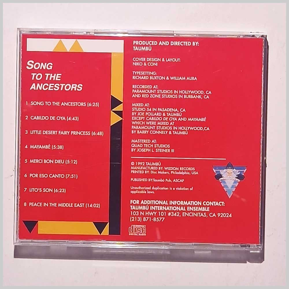 Format: Music CD, Wizdom Records. Latin music CD release from Taumbu International Ensemble with the album Song To the Ancestors. Released on the label Wizdom Records. Latin music CD. Afro-Cuban Jazz music CD. Classic Salsa Music CD. In very good condition. Latin Jazz music CD. This hard to find pre-owned music CD is fully guaranteed. Record label: Wizdom Grade: CD: VG+, Case: VG+ Stock: 1. Item: PM7482tie101 ---T