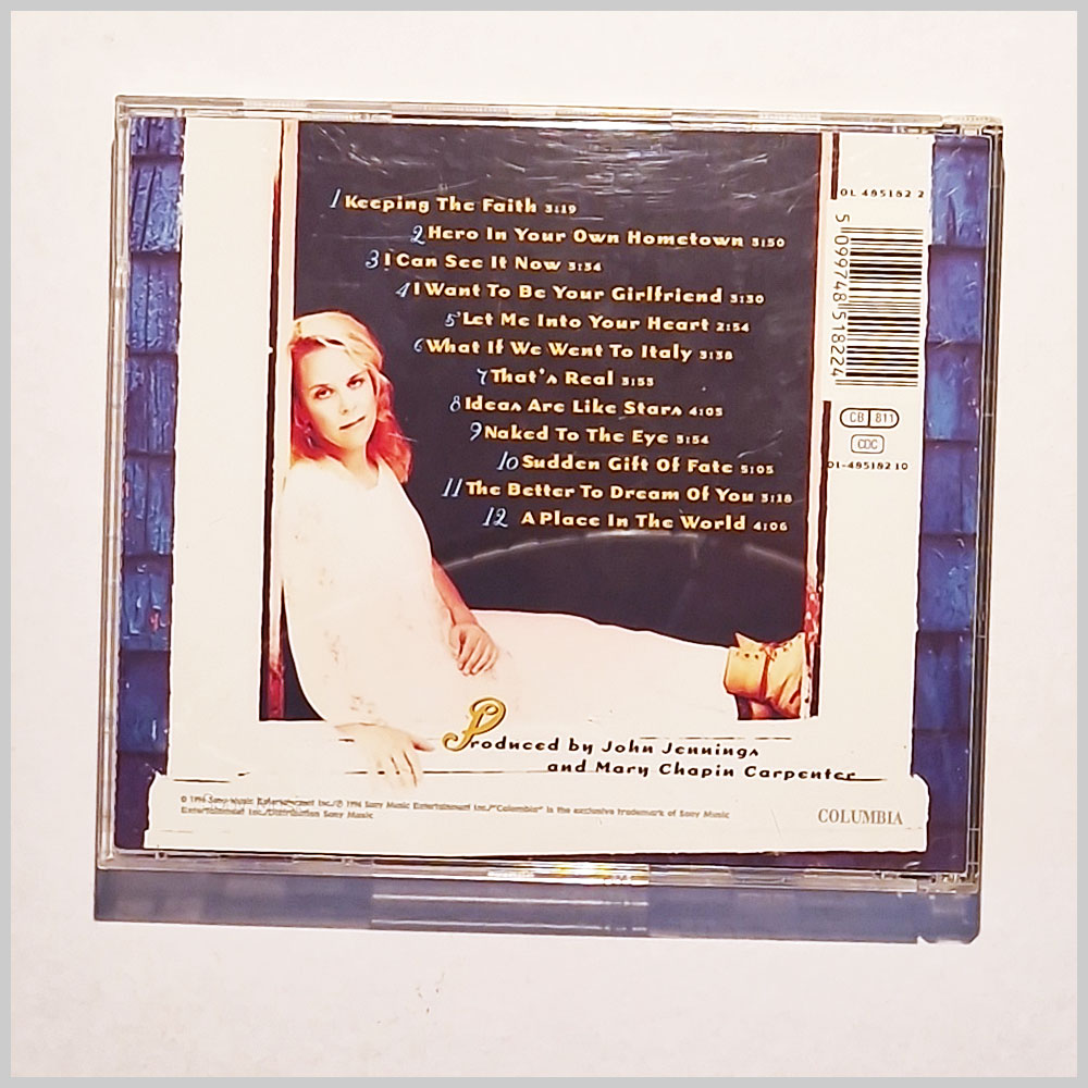 Format: Music CD, Columbia Records. Folk music CD release from Mary Chapin Carpenter with the album A Place in the World. Released on the label Columbia Records. Folk music CD. Record label: Columbia Germany Grade: CD: VG+, Case: EX Stock: 1. Item: PM73414851822 ---C