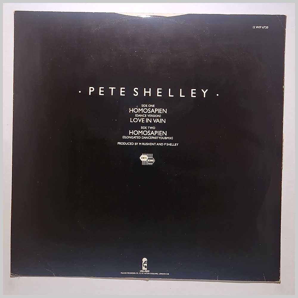 Format: Vinyl Record 12in, Island Records. UK release from 1981. Rock music vinyl record 12 inch single release from Pete Shelley ex member of the rock group The Buzzcocks. Classic Rock music 12in. 2 tracks. Record label: Island Records. UK Grade: Vinyl VG+, Jacket VG+ Stock: 1. Item: RM3324912wip6720 ---S