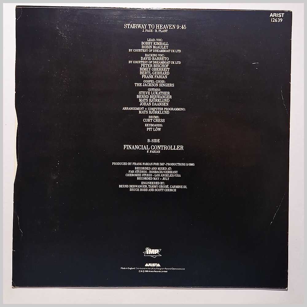 Format: Vinyl Record 12in, Arista Records. UK release from 1985. Rock music vinyl record 12 inch single release from Far Corporation. Classic Rock music 12in. 2 tracks. Their version of the classic Led Zepellin track. Record label: Arista Records. UK Grade: Vinyl VG+, Jacket VG+ Stock: 1. Item: RM33090arist12639 ---F