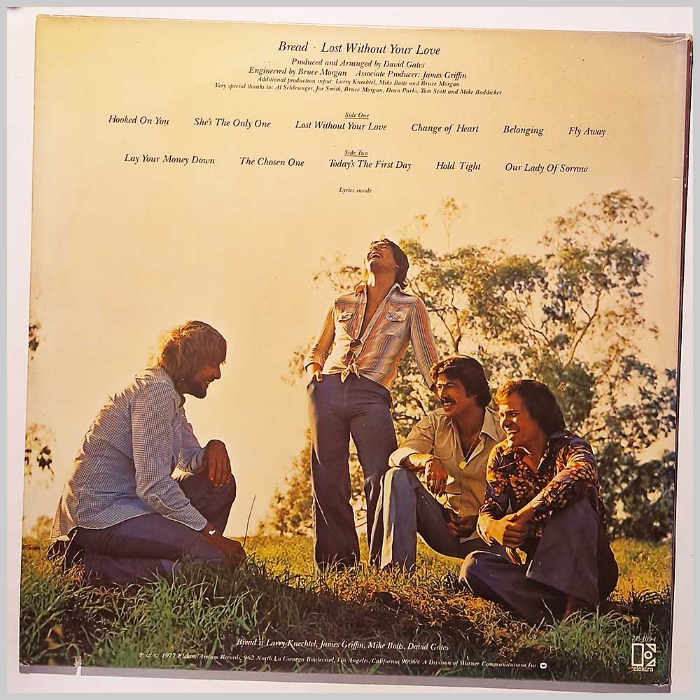 Format: Vinyl Record LP, Elektra Records. USA release from 1976. Rock music vinyl record LP release from Bread. Classic Rock music LP. Housed in a gatefold jacket. Record labels are the Elektra butterfly versions. Small notch cut out of jacket edge. Lovely fresh and clean copy. A United States vinyl pressing, hard to find outside the USA. Record label: Elektra Records. USA Grade: Vinyl EX, Jacket EX Stock: 1. Item: RM334807e1094 ---B