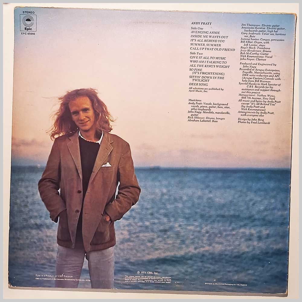 Format: Vinyl Record LP, Epic Records. UK release from 1973. Rock music vinyl record LP release from Andy Pratt. Classic Rock music LP. Record labels are the Epic yellow coloured versions. Some light wear to jacket edges. Record label: Epic Records. UK Grade: Vinyl VG+, Jacket VG+ Stock: 1. Item: RM33481sepc65646 ---P