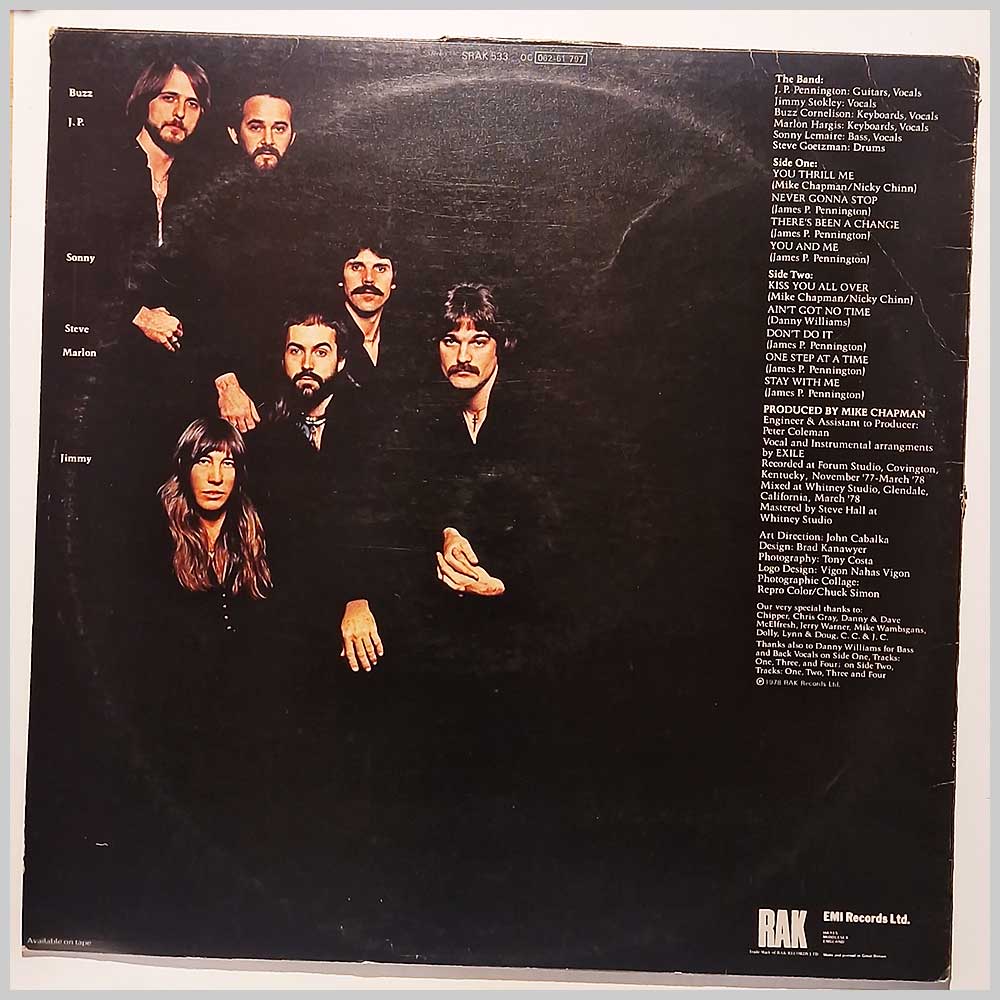 Format: Vinyl Record LP, RAK Records. UK release from 1978. Rock music vinyl record LP release from Exile. Classic Rock, Soul music LP. Some light wear to jacket edges. Record label: RAK Records. UK Grade: Vinyl EX, Jacket VG+ Stock: 1. Item: RM33483srak533 ---E