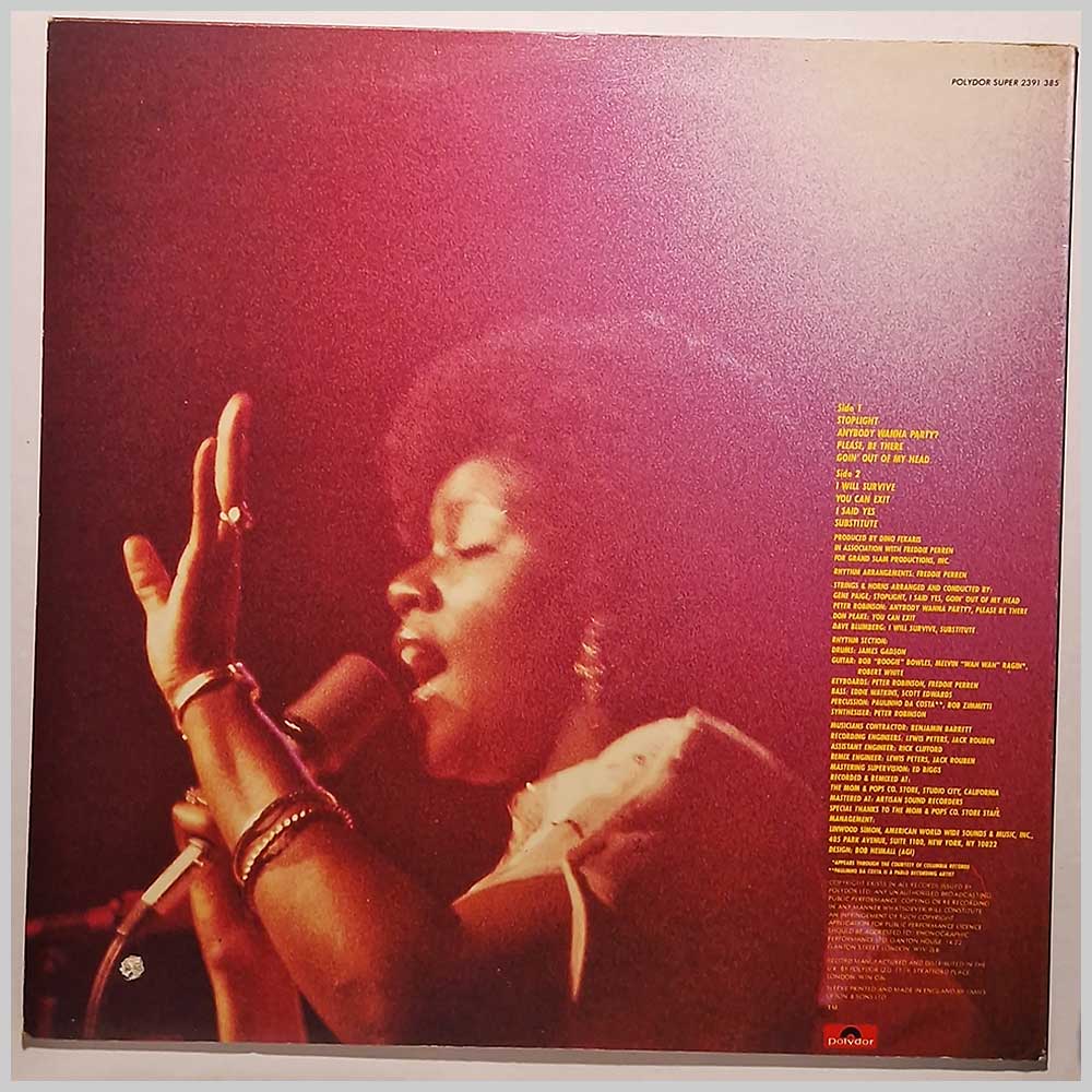 Format: Vinyl Record LP, Polydor Records. UK release from 1978. Soul music vinyl record LP release from Gloria Gaynor. Classic Soul Funk music LP. Small drill hole cut out of jacket. Record label: Polydor Records. UK Grade: Vinyl VG+, Jacket VG+ Stock: 1. Item: RM331172391385 ---G
