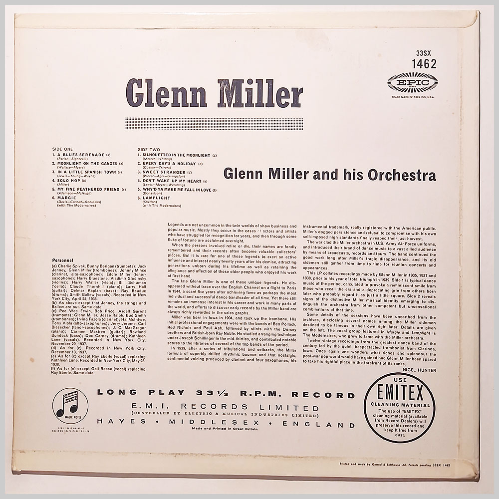 Format: Vinyl Record LP, Columbia Records. UK release. Jazz music vinyl record LP release from Glenn Miller and His Orchestra. Classic Big Band, Swing Jazz music LP. Housed in a flip back style jacket. A nice copy considering its age. Record label: Columbia Records. UK Grade: Vinyl VG+, Jacket EX Stock: 1. Item: RM3368433sx1462 ---M