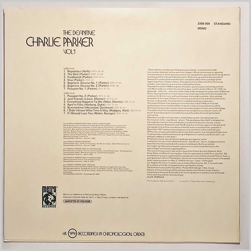 Format: Vinyl Record LP, Metro Records. UK release. Jazz music vinyl record LP release from Charlie Parker. Classic Bop Jazz music LP. Slight crease on corner of jacket. Record label: Metro Records. UK Grade: Vinyl EX, Jacket VG+ Stock: 1. Item: RM333792356082 ---P