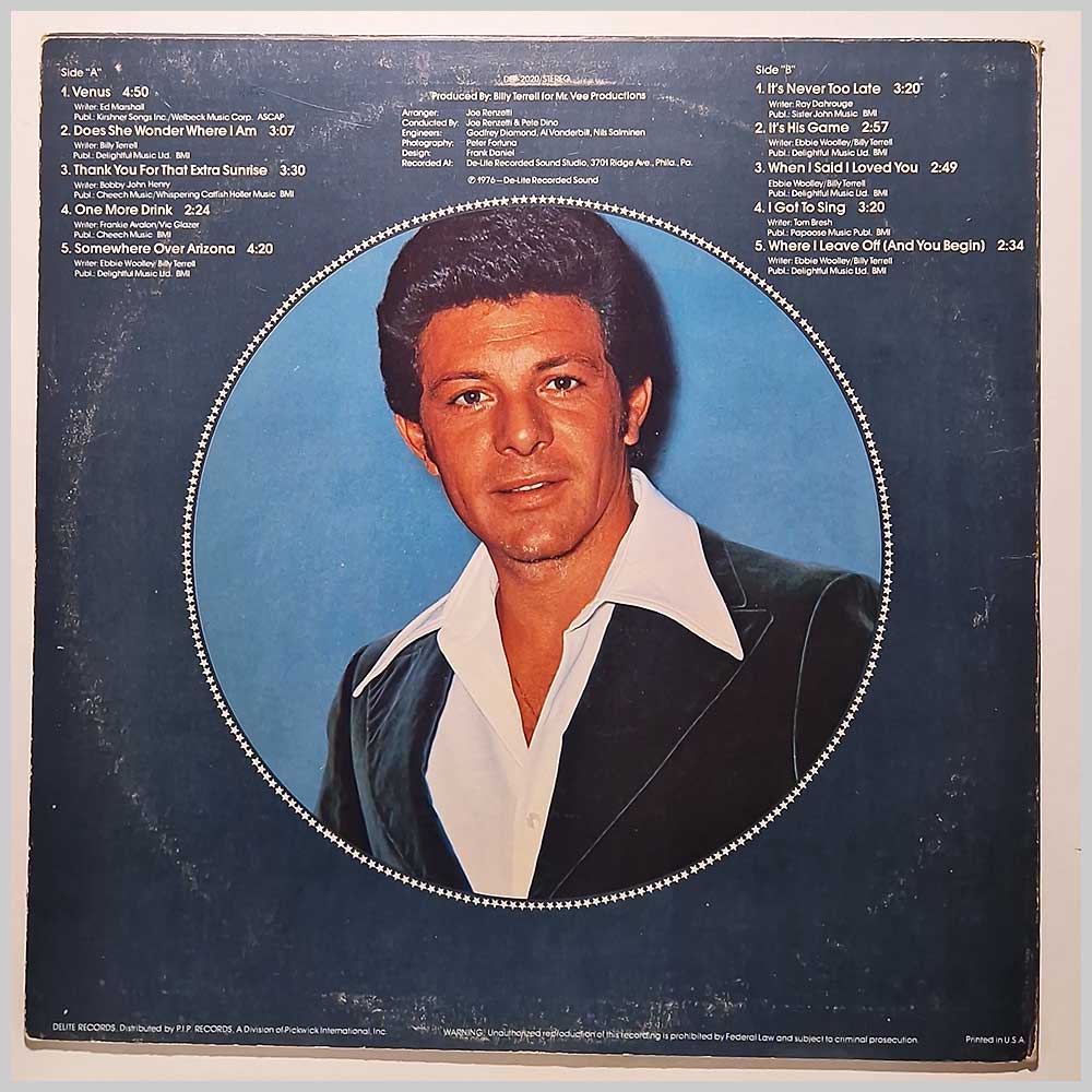 Format: Vinyl Record LP, De-Lite Records. USA release from 1976. Soul music vinyl record LP release from Frankie Avalon. Classic Soul Funk music LP. Some light wear to jacket edges. A United States vinyl pressing, hard to find outside the USA. Record label: De-Lite Records. USA Grade: Vinyl EX, Jacket VG+ Stock: 1. Item: RM33584dep2020 ---A