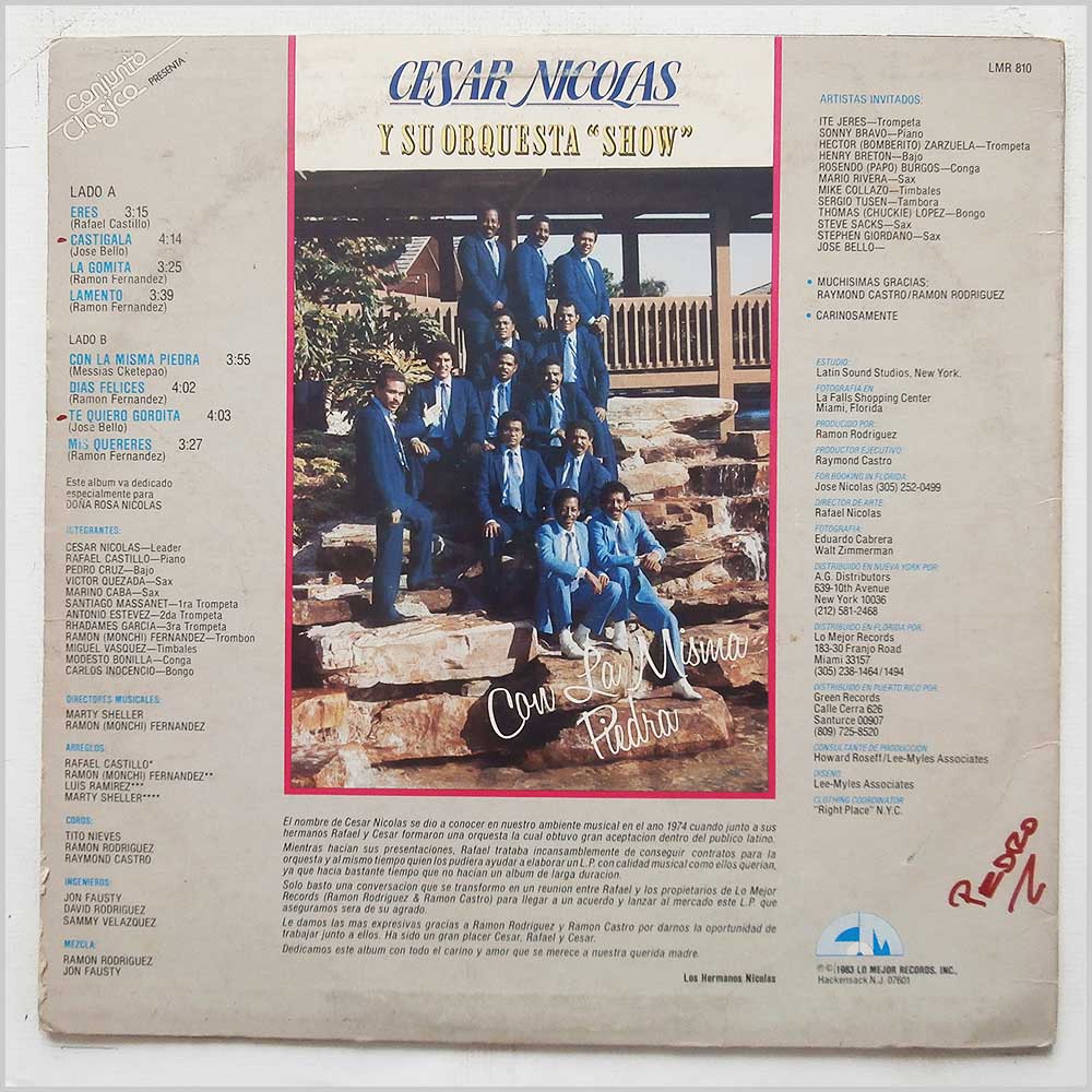 Format: Vinyl Record LP, Race Records. USA release from 1984. Latin music vinyl record LP release from Alex Leon y Su Orquesta. Classic Latin Salsa music LP. Some light scuffing to record. Clear sticky tape applied along edges of jacket. A United States vinyl pressing, hard to find outside the USA. Record label: Race Records. USA Grade: Vinyl VG, Jacket VG Stock: 1. Item: RM29918lpr1420 ---L