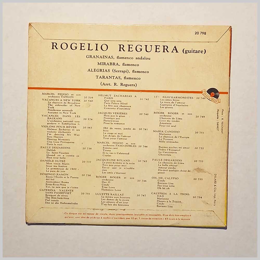 Format: Vinyl Record 7in, Polydor Records. France release. Roots music vinyl record 7 inch EP release from Rogelio Reguera. Classic Spanish Guitar Roots music 7in. 4 tracks. Housed in its original picture sleeve. Record label: Polydor Records. France Grade: Vinyl VG+, Jacket VG+ Stock: 1. Item: RM3315420798 ---R