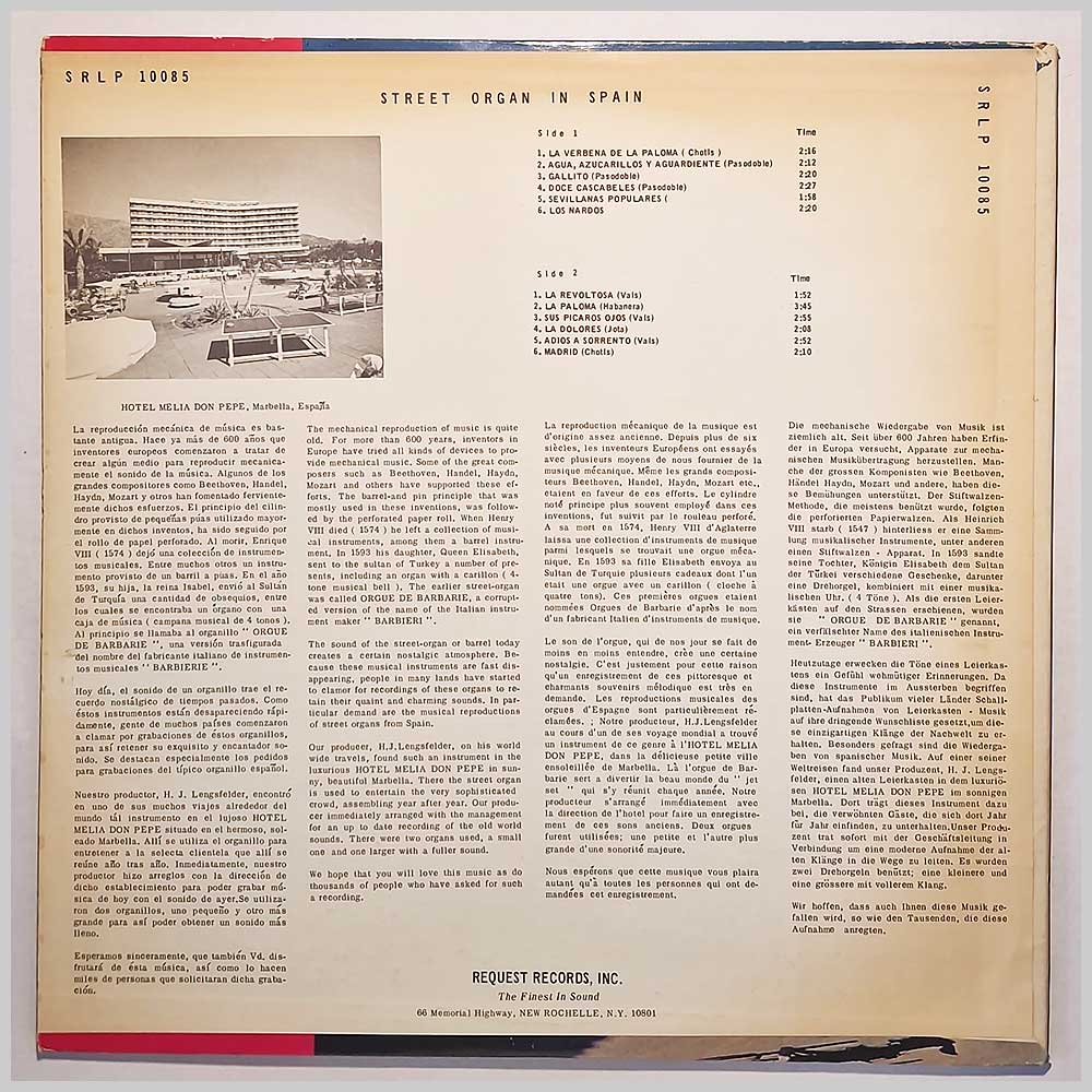Various - Organillo En Espana: Street Organ In Spain (SRLP 10085)