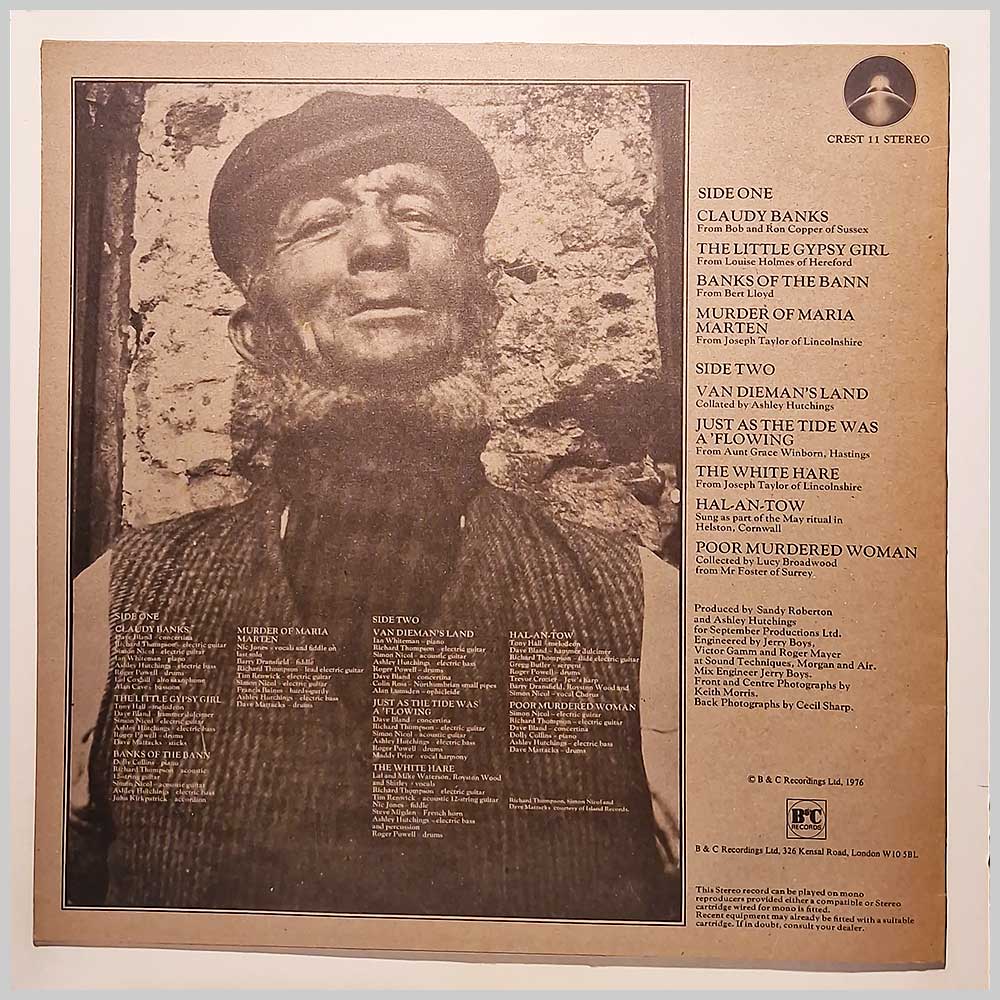 Format: Vinyl Record LP, Mooncrest Records. UK release from 19. Folk music vinyl record LP release from Shirley Collins and The Albion Country Band. Classic Folk music LP. Record label: Mooncrest Records. UK Grade: Vinyl VG+, Jacket VG+ Stock: 1. Item: RM33622crest11 ---C