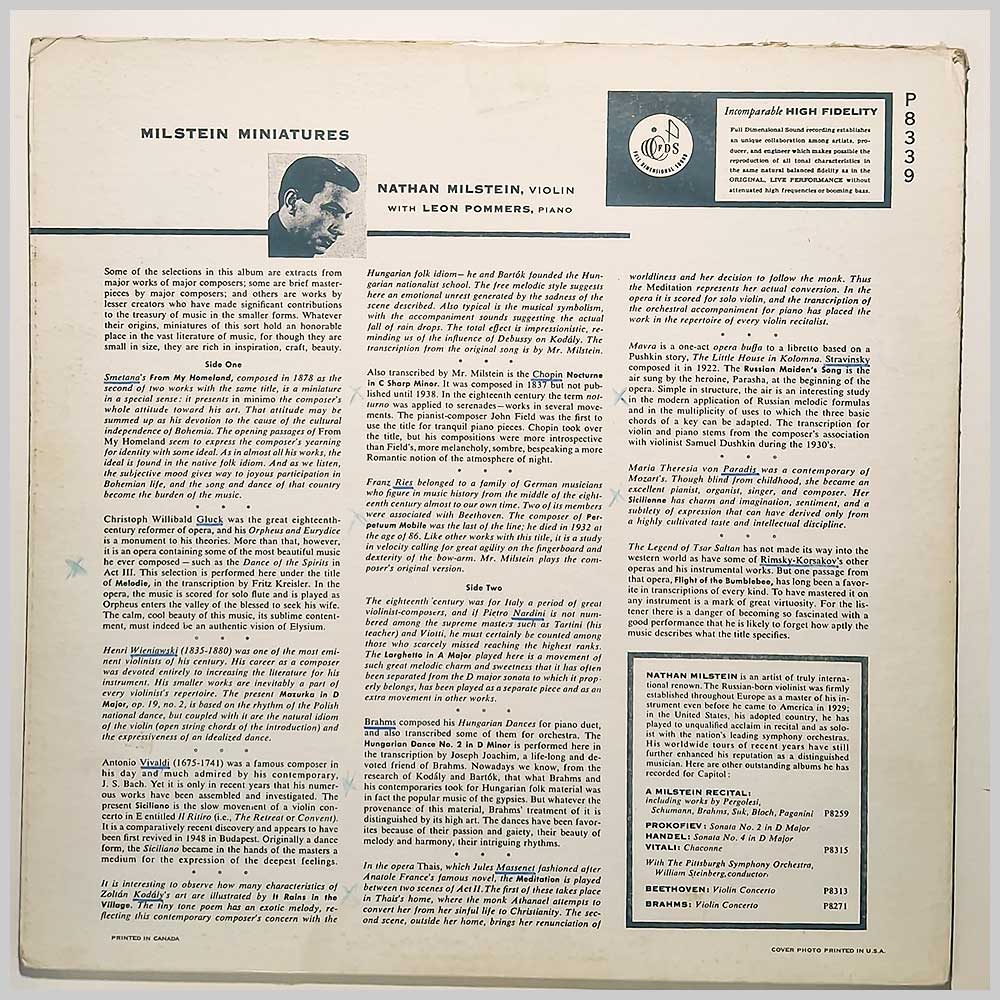 Format: Vinyl Record LP, Capitol Records. USA release. Classical music vinyl record LP release from Nathan Milstein, Leon Pommers. Classical music LP. An early Classical music LP release. Some light wear and tear to jacket. Some light wear to jacket edges. Small bit of writing on jacket. Classical music vinyl record album release featuring some of the top composers and performers. A United States vinyl pressing, hard to find outside the USA. Record label: Capitol Records. USA Grade: Vinyl VG+, Jacket VG+ Stock: 1. Item: RM33415p8339 ---M