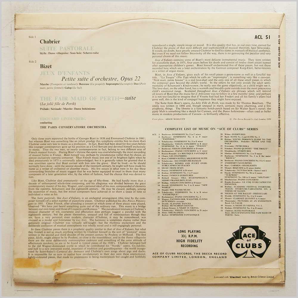 Format: Vinyl Record LP, Ace-Of-Clubs Records. UK release. Classical music vinyl record LP release from Edouard Lindenberg, Paris Conservatoire Orchestra. Classical music LP. Housed in a flip back style jacket. Some light handling wear and tear to jacket. A Classical music vinyl record album release featuring some of the top composers and performers. Record label: Ace-Of-Clubs Records. UK Grade: Vinyl EX, Jacket VG+ Stock: 1. Item: RM20512acl51 ---L