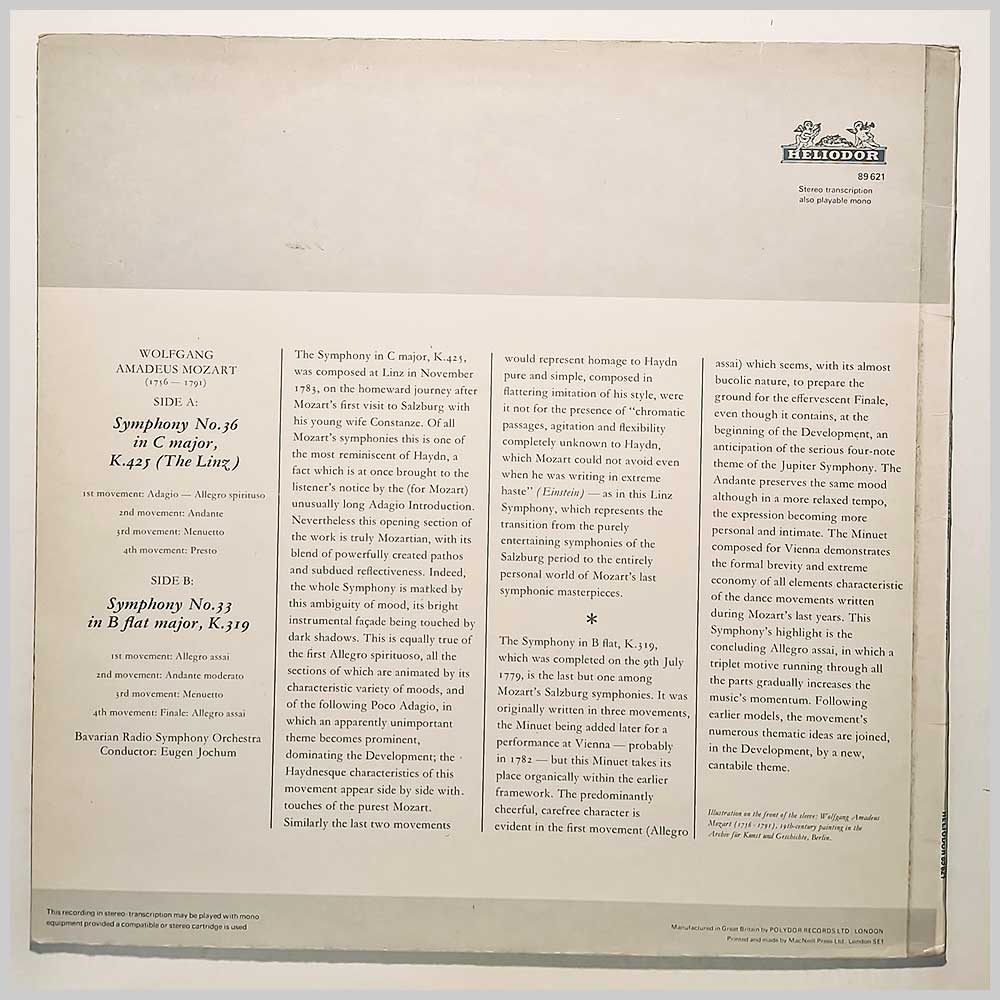 Format: Vinyl Record LP, Heliodor Records. UK release. Classical music vinyl record LP release from Eugen Jochum, Bavarian Radio Symphony Orchestra. Classical music LP. Classical music vinyl record album release featuring some of the top composers and performers. Record label: Heliodor Records. UK Grade: Vinyl EX, Jacket VG+ Stock: 1. Item: RM3341389621 ---J