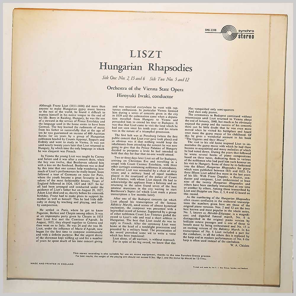 Format: Vinyl Record LP, Concert-Hall Records. UK release. Classical music vinyl record LP release from Hiroyuki Iwaki, Orchestra Of The Vienne State Opera. Classical music LP. Classical music vinyl record album release featuring some of the top composers and performers. Record label: Concert-Hall Records. UK Grade: Vinyl EX, Jacket VG+ Stock: 1. Item: RM33402sms2318 ---I
