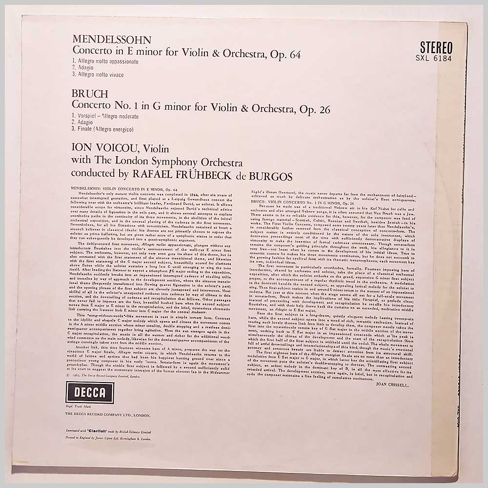 Format: Vinyl Record LP, Decca Records. UK release. Classical music vinyl record LP release from Ion Voicou, Rafael Fruhbeck De Burgos, The London Symphony Orchestra. Classical music LP. Record labels are the boxed Decca logo versions. Classical music vinyl record album release featuring some of the top composers and performers. Record label: Decca Records. UK Grade: Vinyl EX, Jacket EX Stock: 1. Item: RM33631sxl6184 ---V
