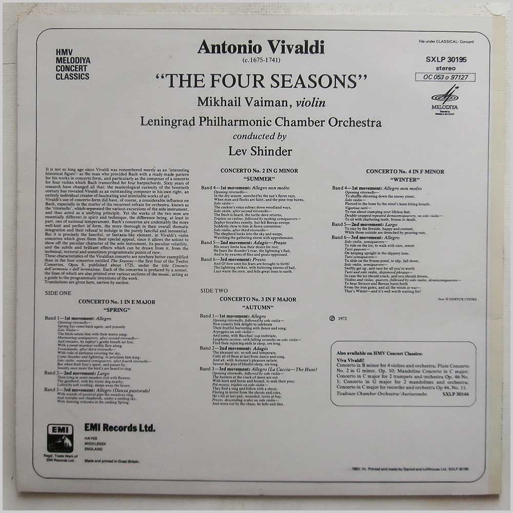 Format: Vinyl Record LP, His-Masters-Voice Records. UK release. Classical music vinyl record LP release from Mikhail Vaiman, Lev Shinder, Leningrad Philharmonic Chamber Orchestra. Classical music LP. A Classical music vinyl record album release featuring some of the top composers and performers.We are currently away. You can still browse our stock, but cannot place an order. We will re-open mid-February 2026 or sooner. Thanks for your patience!