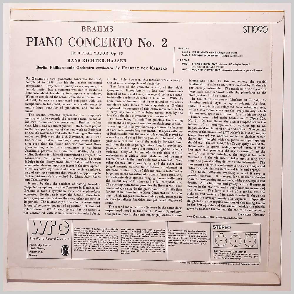 Format: Vinyl Record LP, World-Record-Club Records. UK release. Classical music vinyl record LP release from Hans Richter-Haaser, Herbert von Karajan, Berlin Philharmonic Orchestra. Classical music LP. Housed in a flip back style jacket. A nice copy considering its age. Classical music vinyl record album release featuring some of the top composers and performers. Record label: World-Record-Club Records. UK Grade: Vinyl EX, Jacket EX Stock: 1. Item: RM33627st1090 ---R