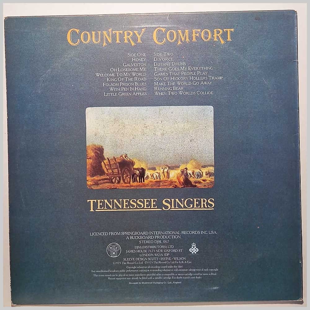 Format: Vinyl Record LP, DJM Records. UK release from 1975. Country music vinyl record LP release from Tennessee Singers. Classic Country music LP. Some light scuffing to record. Record label: DJM Records. UK Grade: Vinyl VG, Jacket VG+ Stock: 1. Item: RM32998djsl067 ---S